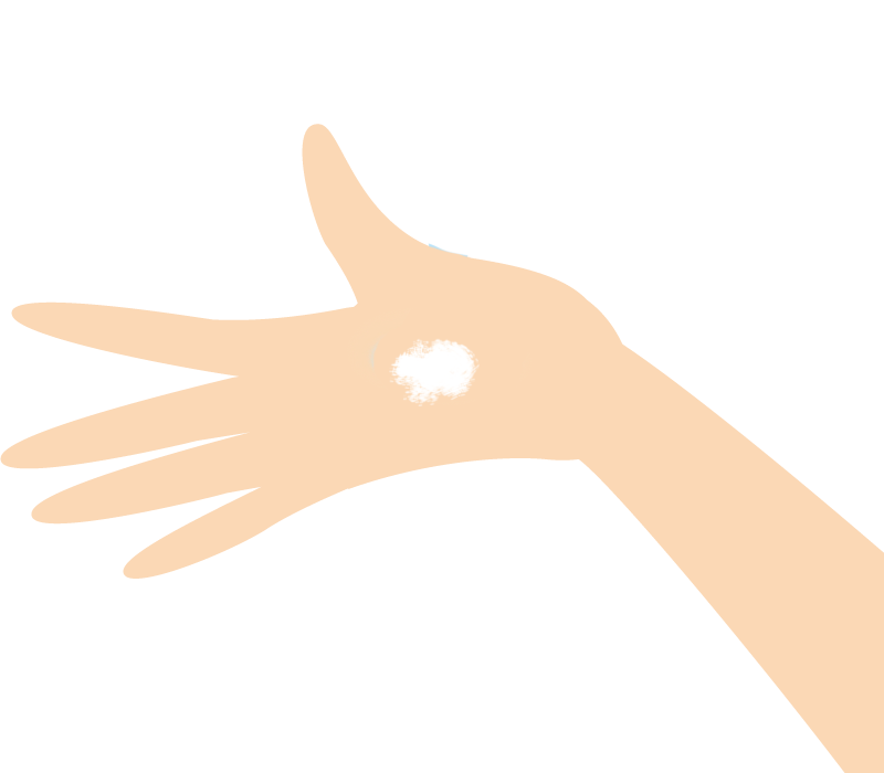 1.1回分を濡れた手のひらに広げ、水やぬるま湯を少しずつ足して泡だてます。
