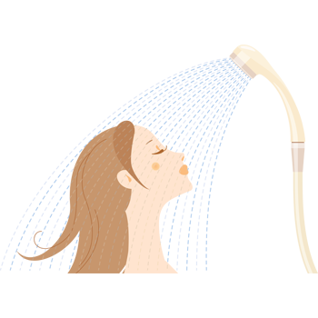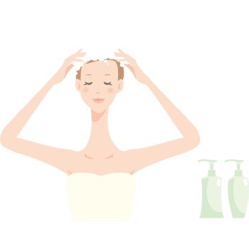 - シャンプーで洗う前にシャワーで予洗いしましょう。
