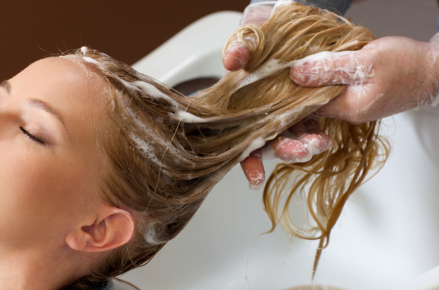 はじめにお湯だけで頭皮と髪の毛をしっかり素洗いします。