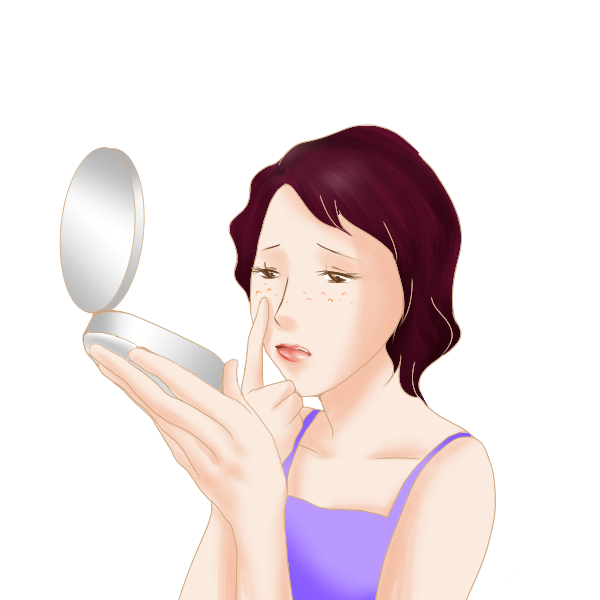 顔全体が脂っぽく皮脂が浮いている感じの肌。特に、鼻やおでこのいわゆるTゾーンの皮脂量が頬(ほほ)などに比べて多く、時間が経つと脂が浮いてテカリが出てきます。